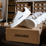 Naše zakázková výroba dává smysl všude tam, kde záleží na reprezentaci, kvalitě a dlouhodobé hodnotě. Boty s vlastním logem a designem jsme ušili už celé řadě firem, značek i projektů, které hledaly víc než jen potisk – chtěly řešení, které bude jejich identitu přirozeně reprezentovat a které lidé budou opravdu nosit. Každá spolupráce vznikala z konkrétní potřeby a vždy s důrazem na detail a řemeslo.